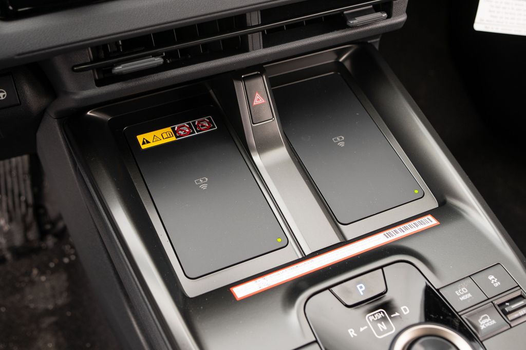 - Center console with covered storage compartment, two cup holders, two Qi-compatible wireless chargers and front lower storage tray