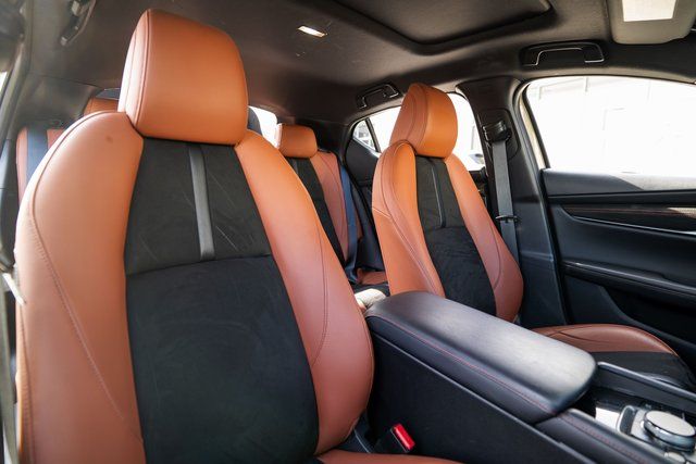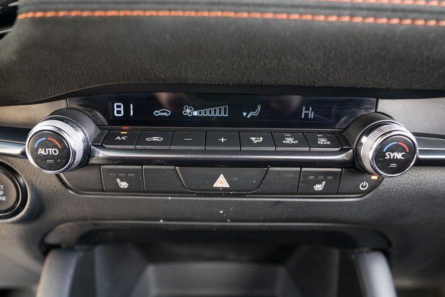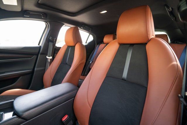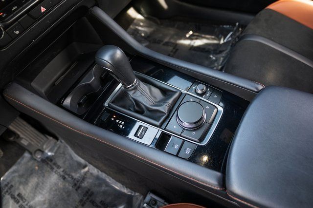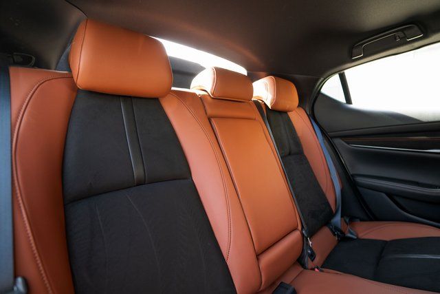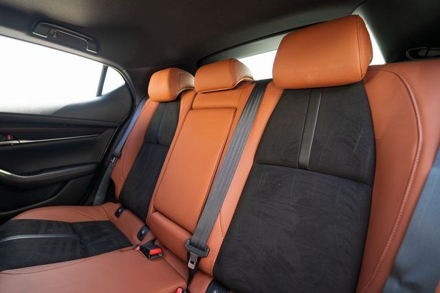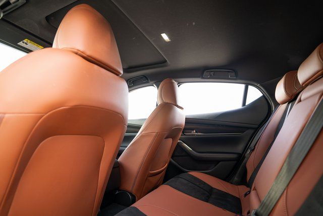 Mazda3 2.5 Carbon Turbo, 4D Hatchback, 2.5L I4, AWD, Zircon Sand Metallic, Teracotta Artificial Leather, 4-Wheel Disc Brakes, 8 Speakers, ABS brakes, Air Conditioning, Alloy wheels, AM/FM radio, Auto High-beam Headlights, Automatic temperature control, Brake assist, Bumpers: body-color, Compass, Delay-off headlights, Driver door bin, Driver vanity mirror, Dual front impact airbags, Dual front side impact airbags, Electronic Stability Control, Emergency communication system: Mazda Connected Services (3-year complimentary trial included), Exterior Parking Camera Rear, Front anti-roll bar, Front Bucket Seats, Front Center Armrest, Front dual zone A/C, Front reading lights, Front wheel independent suspension, Fully automatic headlights, Heated door mirrors, Heated Front Bucket Seats, Heated front seats, High Wall All-Weather Floor Mats, Illuminated entry, Knee airbag, Leather Shift Knob, Leather steering wheel, Leatherette Seat Trim, Low tire pressure warning, MAZDA CONNECT Infotainment System, Memory seat, Occupant sensing airbag, Outside temperature display, Overhead airbag, Overhead console, Panic alarm, Passenger door bin, Passenger vanity mirror, Power door mirrors, Power driver seat, Power moonroof, Power steering, Power windows, Radio data system, Radio: AM/FM/HD Audio System, Rain sensing wipers, Rear seat center armrest, Rear side impact airbag, Rear window defroster, Rear window wiper, Remote keyless entry, Speed control, Speed-sensing steering, Split folding rear seat, Spoiler, Steering wheel mounted audio controls, Tachometer, Telescoping steering wheel, Tilt steering wheel, Traction control, Trip computer, Turn signal indicator mirrors, Variably intermittent wipers, and Wheels: 18" x 7J Aluminum Alloy.